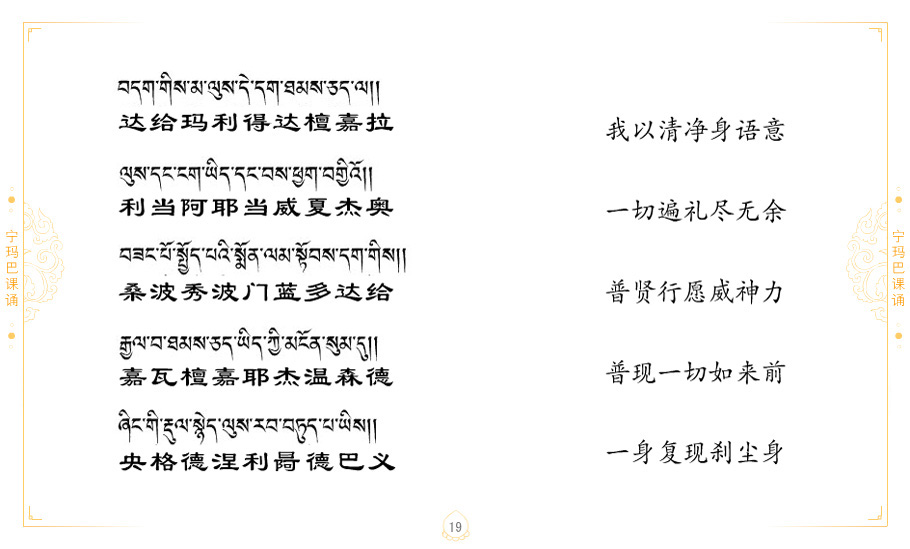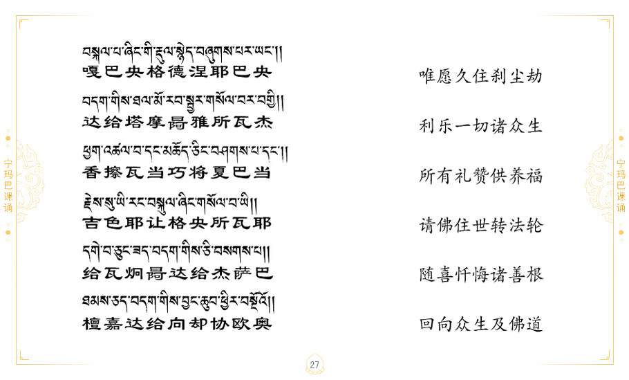 藏 01.加持_p1藏 02.加持_p1藏 03.八圣吉祥颂_p2藏 04.供养仪轨_p6藏 05.普贤行愿品(七支品)_p8藏 06.发心仪轨_p12藏 07.摄受祈祷文 _p17藏 08.文殊礼赞_p20藏 09.文殊开智偈_p21藏 10.请法偈_p22藏 11.回向偈_p22藏 12.普贤行愿品_p23藏 13.成就所愿誓言与咒_p40藏 14.前行的修法_p41藏 15.皈依的修法_p48藏 16.发菩提心_p48藏 17.金刚萨垛诵修法_p49藏 18.曼達拉的修法.p54藏 19.上师瑜珈的修法_p62藏 20.金刚七句祈请文_p75藏 21.意乐成就祈请文_p76藏 22.意乐疾速成就祈请颂_p92藏 23.祷文四句_p95藏 24.往生铜色吉祥愿文_p96藏 25.普获悉地祈祷文_p97藏 26.遣除道障祈祷文_p98藏 27.金刚盔恺修持仪轨_p99藏 28.多个加持咒_p100藏 29.圣号与明咒_p101藏 30.如来真言_p111藏 31.菩萨真言_p118藏 32.金刚真言_p122藏 33.佛母真言_p127藏 34.护法真言_p135藏 35.财神真言_p138藏 36.生活瑜珈_p140藏 37.黄财神修法仪轨_p146藏 39.地藏王菩萨修持仪轨_p149藏 41.前译教法兴盛之愿文_p154藏 42.麦彭仁波切极乐愿文_p159藏 43.文殊大圆满愿文_p161藏 44.吉祥偈_p169藏 45.法王住世祈祷文_p171藏 46.降阳龙朵加参祈祷文_p172藏 47.愿海精髓_p174藏 48.贺耶智私那塔著的密乘简便烧施_p177藏 49.精华会供-金刚萨垛修法仪轨-发愿者-会供-简供-回向吉祥偈_p179-185藏 54.礼赞甘一赞颂王续_p186藏 55.阿弥陀佛修法极乐捷径_p201藏 56.极乐愿文_p205藏 57.大圆满心髓破瓦法_p255藏 58.龙萨破瓦_p255藏 60.前行念诵仪轨_p269藏 62.寂怒百尊修持_p289藏 63.供格萨尔王护法神仪轨_p293藏 64.一髻佛母等护法略修仪轨_p293藏 65.传承上师祈请文_p306藏 66.大圆满莲师荟供仪轨_p311藏 67.调伏情器智慧莲师忿怒修法_p304藏 68.金刚手修持_p345藏 69.供灯仪轨_p347藏 70.荟供仪轨(上师成就加持雨降)_p06藏 73.药师佛_p385藏 74.顺息解脱密法(大圆满虹光)_p06藏 75.普贤王如来祈祷能显自然智根本愿文_p396藏 76.释迦牟尼佛_修法仪轨_p409藏 77.古萨里修法_p417藏 78.火施仪轨(回向魔崇部多)_p420藏 79.法王上师相应法_p429藏 80.上师祈请颂_p434藏 81.真实名经归纳七句_p435藏 82.无垢忏悔续_p436