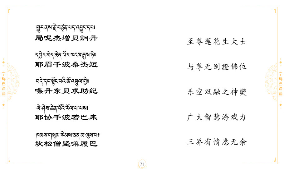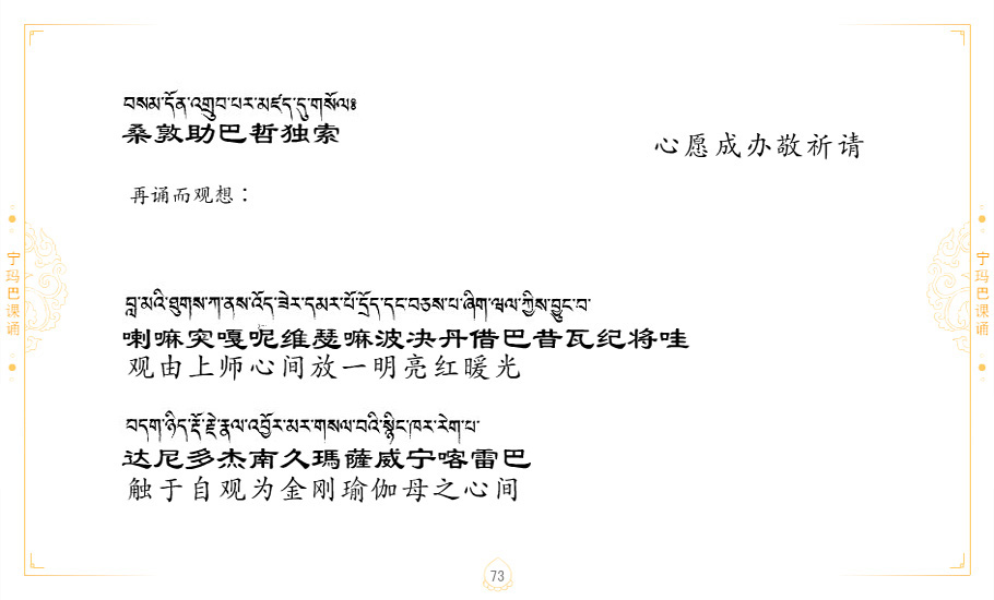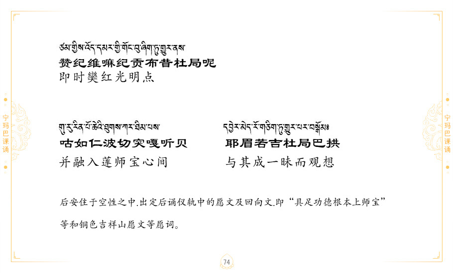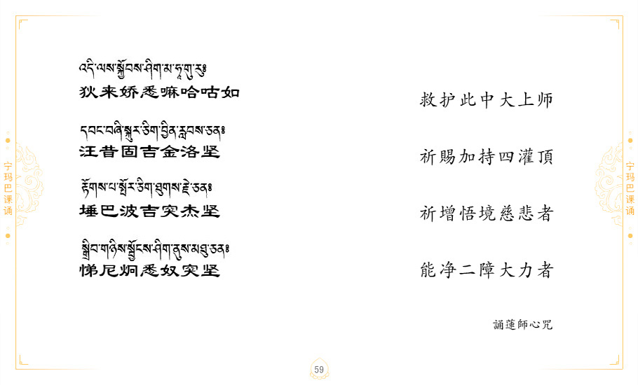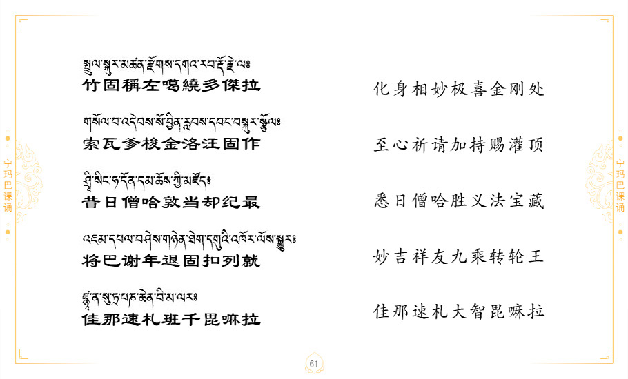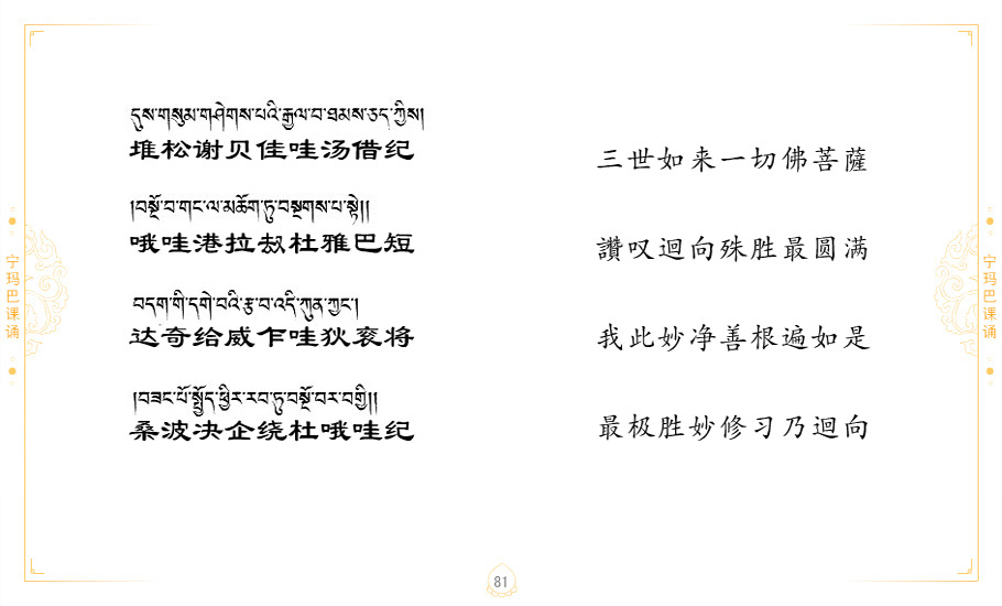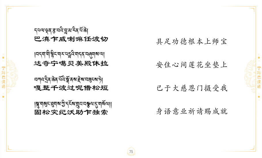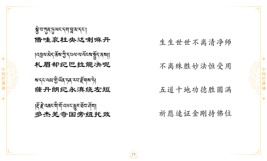 藏 01.加持_p1藏 02.加持_p1藏 03.八圣吉祥颂_p2藏 04.供养仪轨_p6藏 05.普贤行愿品(七支品)_p8藏 06.发心仪轨_p12藏 07.摄受祈祷文 _p17藏 08.文殊礼赞_p20藏 09.文殊开智偈_p21藏 10.请法偈_p22藏 11.回向偈_p22藏 12.普贤行愿品_p23藏 13.成就所愿誓言与咒_p40藏 14.前行的修法_p41藏 15.皈依的修法_p48藏 16.发菩提心_p48藏 17.金刚萨垛诵修法_p49藏 18.曼達拉的修法.p54藏 19.上师瑜珈的修法_p62藏 20.金刚七句祈请文_p75藏 21.意乐成就祈请文_p76藏 22.意乐疾速成就祈请颂_p92藏 23.祷文四句_p95藏 24.往生铜色吉祥愿文_p96藏 25.普获悉地祈祷文_p97藏 26.遣除道障祈祷文_p98藏 27.金刚盔恺修持仪轨_p99藏 28.多个加持咒_p100藏 29.圣号与明咒_p101藏 30.如来真言_p111藏 31.菩萨真言_p118藏 32.金刚真言_p122藏 33.佛母真言_p127藏 34.护法真言_p135藏 35.财神真言_p138藏 36.生活瑜珈_p140藏 37.黄财神修法仪轨_p146藏 39.地藏王菩萨修持仪轨_p149藏 41.前译教法兴盛之愿文_p154藏 42.麦彭仁波切极乐愿文_p159藏 43.文殊大圆满愿文_p161藏 44.吉祥偈_p169藏 45.法王住世祈祷文_p171藏 46.降阳龙朵加参祈祷文_p172藏 47.愿海精髓_p174藏 48.贺耶智私那塔著的密乘简便烧施_p177藏 49.精华会供-金刚萨垛修法仪轨-发愿者-会供-简供-回向吉祥偈_p179-185藏 54.礼赞甘一赞颂王续_p186藏 55.阿弥陀佛修法极乐捷径_p201藏 56.极乐愿文_p205藏 57.大圆满心髓破瓦法_p255藏 58.龙萨破瓦_p255藏 60.前行念诵仪轨_p269藏 62.寂怒百尊修持_p289藏 63.供格萨尔王护法神仪轨_p293藏 64.一髻佛母等护法略修仪轨_p293藏 65.传承上师祈请文_p306藏 66.大圆满莲师荟供仪轨_p311藏 67.调伏情器智慧莲师忿怒修法_p304藏 68.金刚手修持_p345藏 69.供灯仪轨_p347藏 70.荟供仪轨(上师成就加持雨降)_p06藏 73.药师佛_p385藏 74.顺息解脱密法(大圆满虹光)_p06藏 75.普贤王如来祈祷能显自然智根本愿文_p396藏 76.释迦牟尼佛_修法仪轨_p409藏 77.古萨里修法_p417藏 78.火施仪轨(回向魔崇部多)_p420藏 79.法王上师相应法_p429藏 80.上师祈请颂_p434藏 81.真实名经归纳七句_p435藏 82.无垢忏悔续_p436