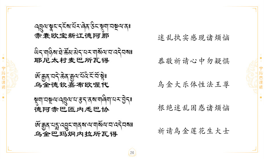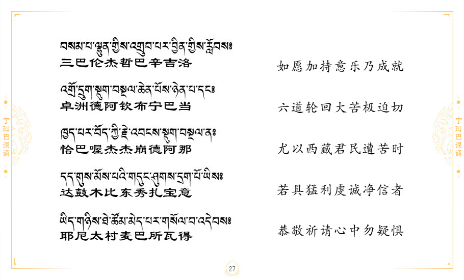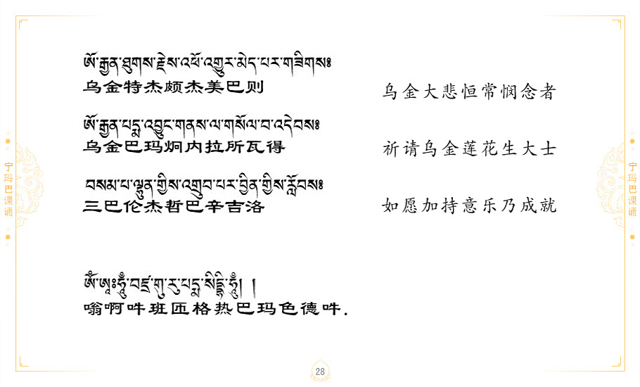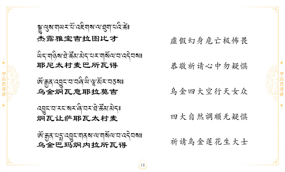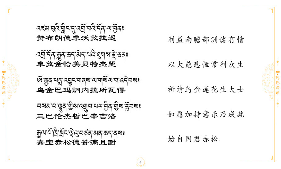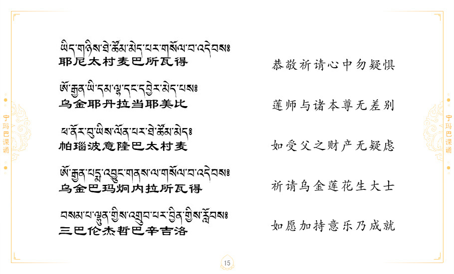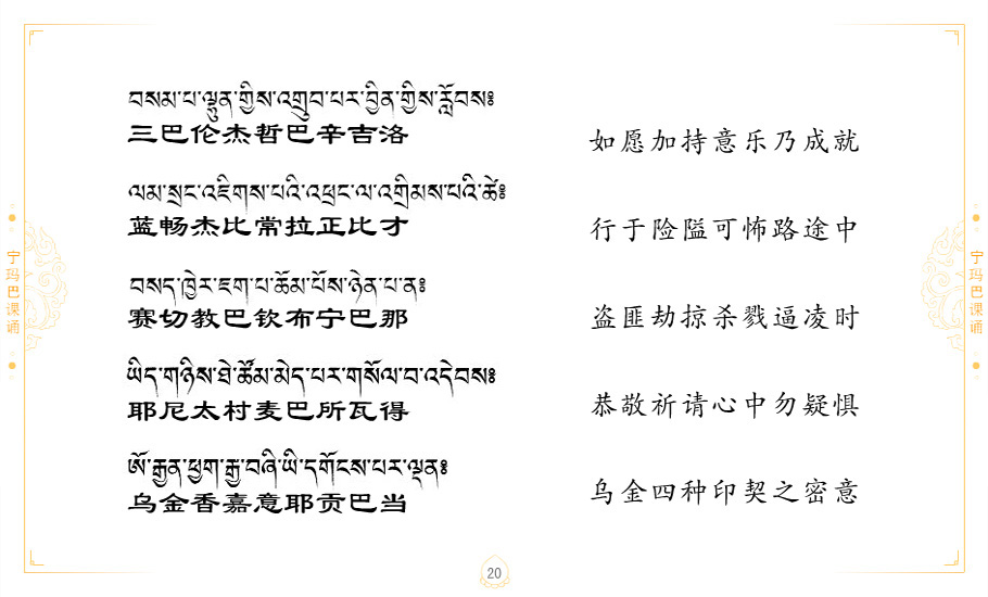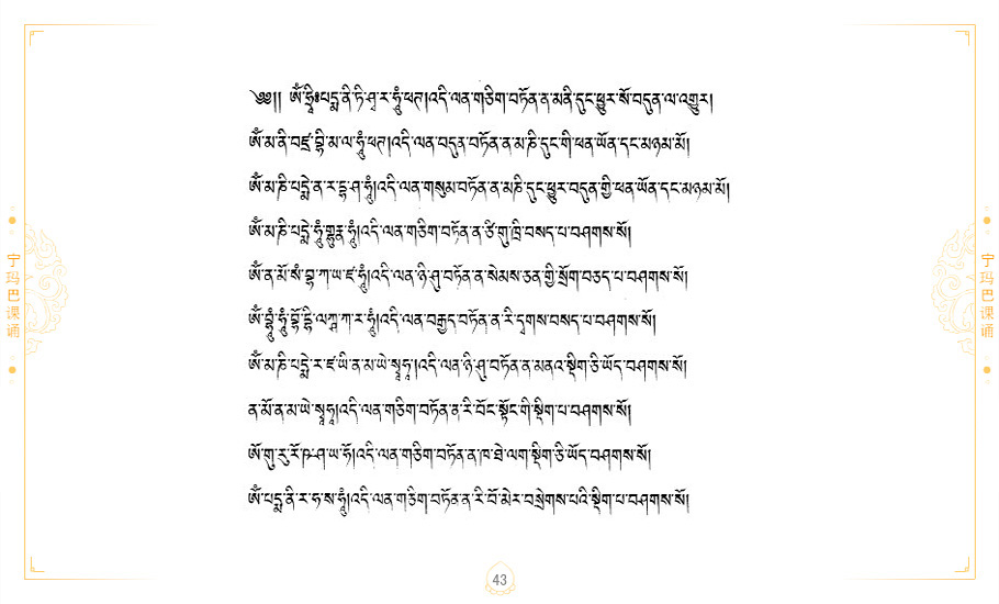 藏 01.加持_p1藏 02.加持_p1藏 03.八圣吉祥颂_p2藏 04.供养仪轨_p6藏 05.普贤行愿品(七支品)_p8藏 06.发心仪轨_p12藏 07.摄受祈祷文 _p17藏 08.文殊礼赞_p20藏 09.文殊开智偈_p21藏 10.请法偈_p22藏 11.回向偈_p22藏 12.普贤行愿品_p23藏 13.成就所愿誓言与咒_p40藏 14.前行的修法_p41藏 15.皈依的修法_p48藏 16.发菩提心_p48藏 17.金刚萨垛诵修法_p49藏 18.曼達拉的修法.p54藏 19.上师瑜珈的修法_p62藏 20.金刚七句祈请文_p75藏 21.意乐成就祈请文_p76藏 22.意乐疾速成就祈请颂_p92藏 23.祷文四句_p95藏 24.往生铜色吉祥愿文_p96藏 25.普获悉地祈祷文_p97藏 26.遣除道障祈祷文_p98藏 27.金刚盔恺修持仪轨_p99藏 28.多个加持咒_p100藏 29.圣号与明咒_p101藏 30.如来真言_p111藏 31.菩萨真言_p118藏 32.金刚真言_p122藏 33.佛母真言_p127藏 34.护法真言_p135藏 35.财神真言_p138藏 36.生活瑜珈_p140藏 37.黄财神修法仪轨_p146藏 39.地藏王菩萨修持仪轨_p149藏 41.前译教法兴盛之愿文_p154藏 42.麦彭仁波切极乐愿文_p159藏 43.文殊大圆满愿文_p161藏 44.吉祥偈_p169藏 45.法王住世祈祷文_p171藏 46.降阳龙朵加参祈祷文_p172藏 47.愿海精髓_p174藏 48.贺耶智私那塔著的密乘简便烧施_p177藏 49.精华会供-金刚萨垛修法仪轨-发愿者-会供-简供-回向吉祥偈_p179-185藏 54.礼赞甘一赞颂王续_p186藏 55.阿弥陀佛修法极乐捷径_p201藏 56.极乐愿文_p205藏 57.大圆满心髓破瓦法_p255藏 58.龙萨破瓦_p255藏 60.前行念诵仪轨_p269藏 62.寂怒百尊修持_p289藏 63.供格萨尔王护法神仪轨_p293藏 64.一髻佛母等护法略修仪轨_p293藏 65.传承上师祈请文_p306藏 66.大圆满莲师荟供仪轨_p311藏 67.调伏情器智慧莲师忿怒修法_p304藏 68.金刚手修持_p345藏 69.供灯仪轨_p347藏 70.荟供仪轨(上师成就加持雨降)_p06藏 73.药师佛_p385藏 74.顺息解脱密法(大圆满虹光)_p06藏 75.普贤王如来祈祷能显自然智根本愿文_p396藏 76.释迦牟尼佛_修法仪轨_p409藏 77.古萨里修法_p417藏 78.火施仪轨(回向魔崇部多)_p420藏 79.法王上师相应法_p429藏 80.上师祈请颂_p434藏 81.真实名经归纳七句_p435藏 82.无垢忏悔续_p436