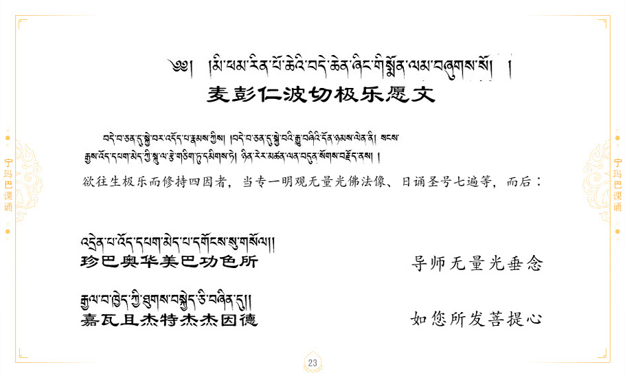 藏 01.加持_p1藏 02.加持_p1藏 03.八圣吉祥颂_p2藏 04.供养仪轨_p6藏 05.普贤行愿品(七支品)_p8藏 06.发心仪轨_p12藏 07.摄受祈祷文 _p17藏 08.文殊礼赞_p20藏 09.文殊开智偈_p21藏 10.请法偈_p22藏 11.回向偈_p22藏 12.普贤行愿品_p23藏 13.成就所愿誓言与咒_p40藏 14.前行的修法_p41藏 15.皈依的修法_p48藏 16.发菩提心_p48藏 17.金刚萨垛诵修法_p49藏 18.曼達拉的修法.p54藏 19.上师瑜珈的修法_p62藏 20.金刚七句祈请文_p75藏 21.意乐成就祈请文_p76藏 22.意乐疾速成就祈请颂_p92藏 23.祷文四句_p95藏 24.往生铜色吉祥愿文_p96藏 25.普获悉地祈祷文_p97藏 26.遣除道障祈祷文_p98藏 27.金刚盔恺修持仪轨_p99藏 28.多个加持咒_p100藏 29.圣号与明咒_p101藏 30.如来真言_p111藏 31.菩萨真言_p118藏 32.金刚真言_p122藏 33.佛母真言_p127藏 34.护法真言_p135藏 35.财神真言_p138藏 36.生活瑜珈_p140藏 37.黄财神修法仪轨_p146藏 39.地藏王菩萨修持仪轨_p149藏 41.前译教法兴盛之愿文_p154藏 42.麦彭仁波切极乐愿文_p159藏 43.文殊大圆满愿文_p161藏 44.吉祥偈_p169藏 45.法王住世祈祷文_p171藏 46.降阳龙朵加参祈祷文_p172藏 47.愿海精髓_p174藏 48.贺耶智私那塔著的密乘简便烧施_p177藏 49.精华会供-金刚萨垛修法仪轨-发愿者-会供-简供-回向吉祥偈_p179-185藏 54.礼赞甘一赞颂王续_p186藏 55.阿弥陀佛修法极乐捷径_p201藏 56.极乐愿文_p205藏 57.大圆满心髓破瓦法_p255藏 58.龙萨破瓦_p255藏 60.前行念诵仪轨_p269藏 62.寂怒百尊修持_p289藏 63.供格萨尔王护法神仪轨_p293藏 64.一髻佛母等护法略修仪轨_p293藏 65.传承上师祈请文_p306藏 66.大圆满莲师荟供仪轨_p311藏 67.调伏情器智慧莲师忿怒修法_p304藏 68.金刚手修持_p345藏 69.供灯仪轨_p347藏 70.荟供仪轨(上师成就加持雨降)_p06藏 73.药师佛_p385藏 74.顺息解脱密法(大圆满虹光)_p06藏 75.普贤王如来祈祷能显自然智根本愿文_p396藏 76.释迦牟尼佛_修法仪轨_p409藏 77.古萨里修法_p417藏 78.火施仪轨(回向魔崇部多)_p420藏 79.法王上师相应法_p429藏 80.上师祈请颂_p434藏 81.真实名经归纳七句_p435藏 82.无垢忏悔续_p436