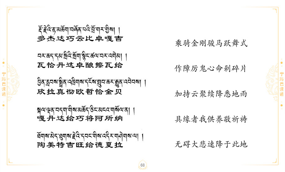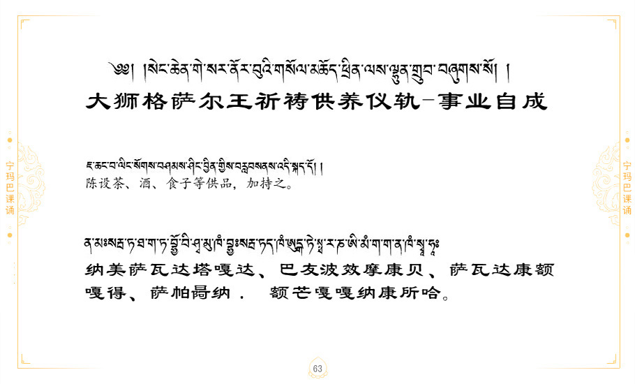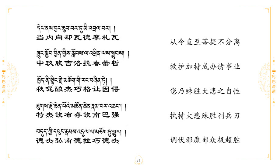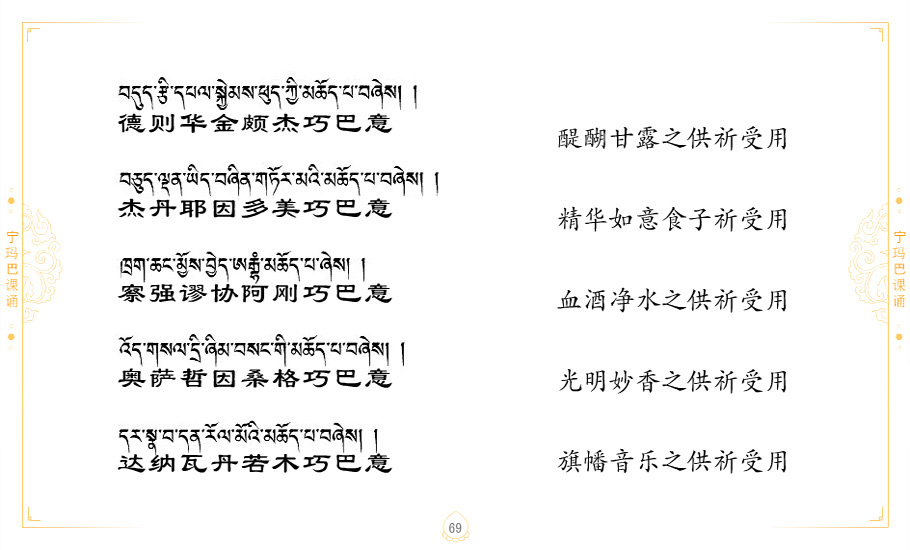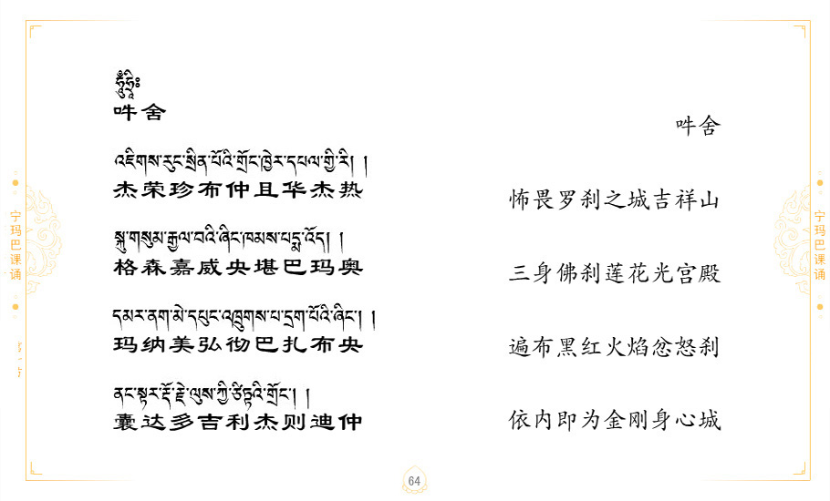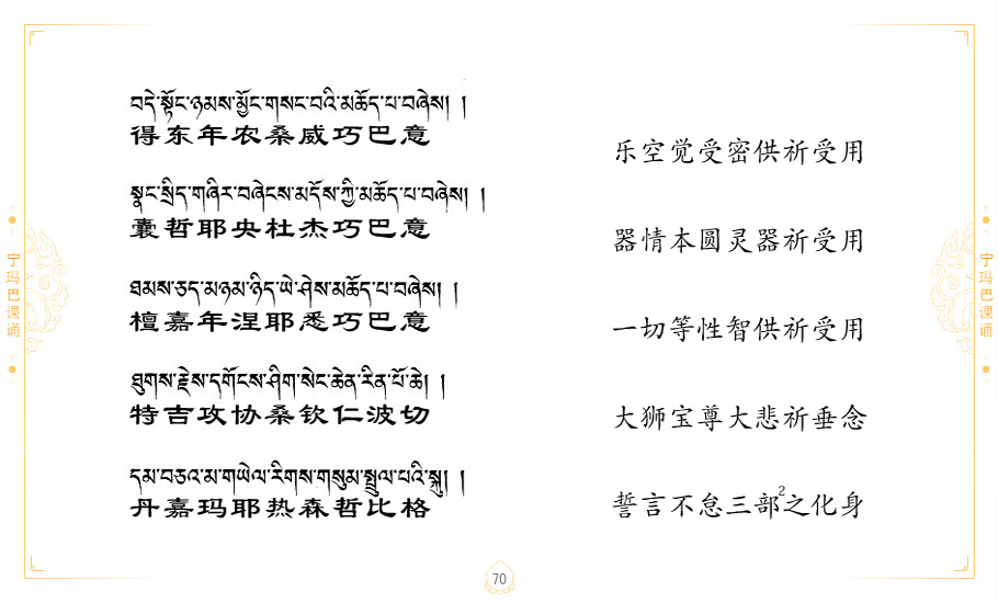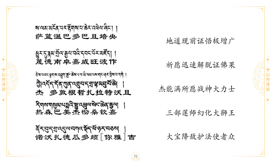 藏 01.加持_p1藏 02.加持_p1藏 03.八圣吉祥颂_p2藏 04.供养仪轨_p6藏 05.普贤行愿品(七支品)_p8藏 06.发心仪轨_p12藏 07.摄受祈祷文 _p17藏 08.文殊礼赞_p20藏 09.文殊开智偈_p21藏 10.请法偈_p22藏 11.回向偈_p22藏 12.普贤行愿品_p23藏 13.成就所愿誓言与咒_p40藏 14.前行的修法_p41藏 15.皈依的修法_p48藏 16.发菩提心_p48藏 17.金刚萨垛诵修法_p49藏 18.曼達拉的修法.p54藏 19.上师瑜珈的修法_p62藏 20.金刚七句祈请文_p75藏 21.意乐成就祈请文_p76藏 22.意乐疾速成就祈请颂_p92藏 23.祷文四句_p95藏 24.往生铜色吉祥愿文_p96藏 25.普获悉地祈祷文_p97藏 26.遣除道障祈祷文_p98藏 27.金刚盔恺修持仪轨_p99藏 28.多个加持咒_p100藏 29.圣号与明咒_p101藏 30.如来真言_p111藏 31.菩萨真言_p118藏 32.金刚真言_p122藏 33.佛母真言_p127藏 34.护法真言_p135藏 35.财神真言_p138藏 36.生活瑜珈_p140藏 37.黄财神修法仪轨_p146藏 39.地藏王菩萨修持仪轨_p149藏 41.前译教法兴盛之愿文_p154藏 42.麦彭仁波切极乐愿文_p159藏 43.文殊大圆满愿文_p161藏 44.吉祥偈_p169藏 45.法王住世祈祷文_p171藏 46.降阳龙朵加参祈祷文_p172藏 47.愿海精髓_p174藏 48.贺耶智私那塔著的密乘简便烧施_p177藏 49.精华会供-金刚萨垛修法仪轨-发愿者-会供-简供-回向吉祥偈_p179-185藏 54.礼赞甘一赞颂王续_p186藏 55.阿弥陀佛修法极乐捷径_p201藏 56.极乐愿文_p205藏 57.大圆满心髓破瓦法_p255藏 58.龙萨破瓦_p255藏 60.前行念诵仪轨_p269藏 62.寂怒百尊修持_p289藏 63.供格萨尔王护法神仪轨_p293藏 64.一髻佛母等护法略修仪轨_p293藏 65.传承上师祈请文_p306藏 66.大圆满莲师荟供仪轨_p311藏 67.调伏情器智慧莲师忿怒修法_p304藏 68.金刚手修持_p345藏 69.供灯仪轨_p347藏 70.荟供仪轨(上师成就加持雨降)_p06藏 73.药师佛_p385藏 74.顺息解脱密法(大圆满虹光)_p06藏 75.普贤王如来祈祷能显自然智根本愿文_p396藏 76.释迦牟尼佛_修法仪轨_p409藏 77.古萨里修法_p417藏 78.火施仪轨(回向魔崇部多)_p420藏 79.法王上师相应法_p429藏 80.上师祈请颂_p434藏 81.真实名经归纳七句_p435藏 82.无垢忏悔续_p436