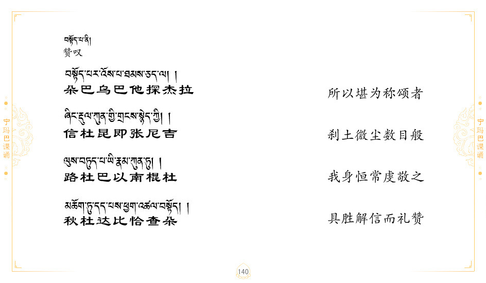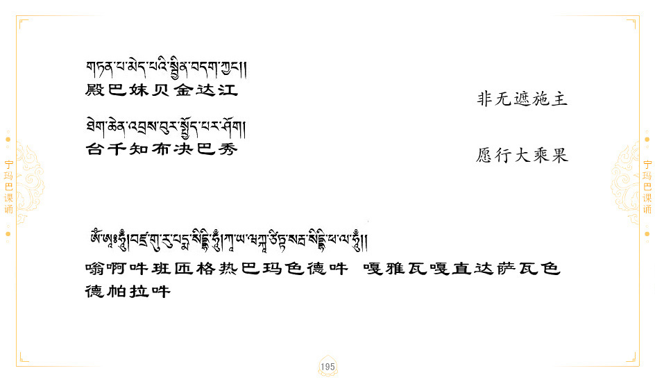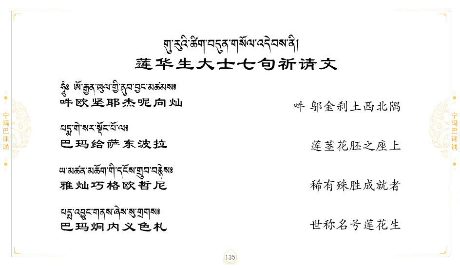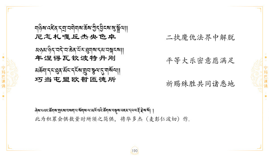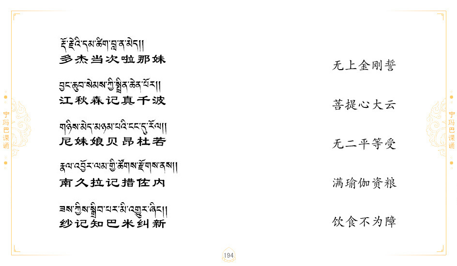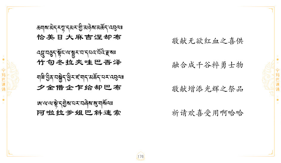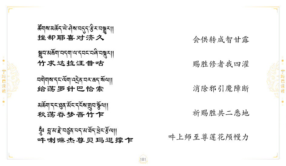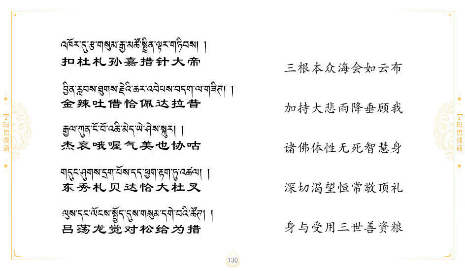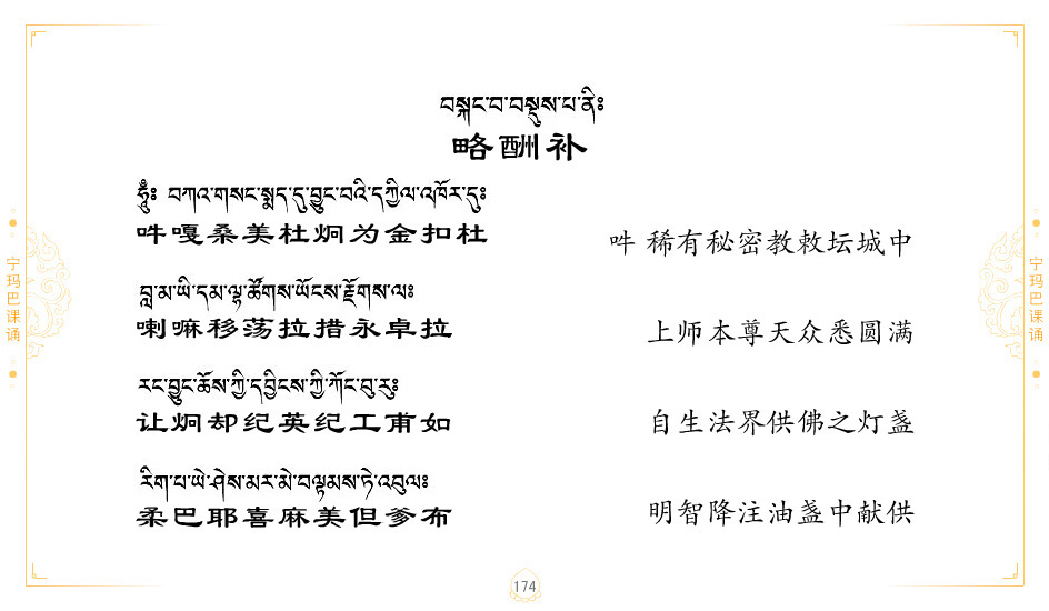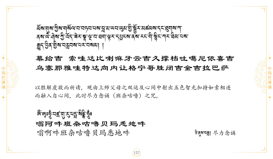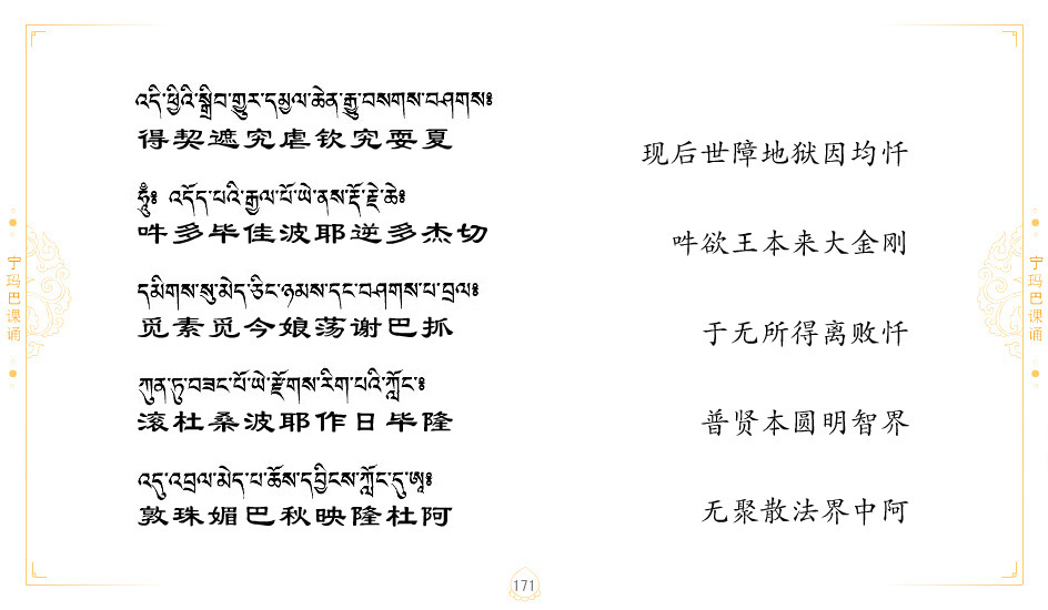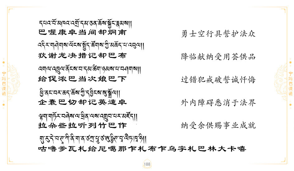 藏 01.加持_p1藏 02.加持_p1藏 03.八圣吉祥颂_p2藏 04.供养仪轨_p6藏 05.普贤行愿品(七支品)_p8藏 06.发心仪轨_p12藏 07.摄受祈祷文 _p17藏 08.文殊礼赞_p20藏 09.文殊开智偈_p21藏 10.请法偈_p22藏 11.回向偈_p22藏 12.普贤行愿品_p23藏 13.成就所愿誓言与咒_p40藏 14.前行的修法_p41藏 15.皈依的修法_p48藏 16.发菩提心_p48藏 17.金刚萨垛诵修法_p49藏 18.曼達拉的修法.p54藏 19.上师瑜珈的修法_p62藏 20.金刚七句祈请文_p75藏 21.意乐成就祈请文_p76藏 22.意乐疾速成就祈请颂_p92藏 23.祷文四句_p95藏 24.往生铜色吉祥愿文_p96藏 25.普获悉地祈祷文_p97藏 26.遣除道障祈祷文_p98藏 27.金刚盔恺修持仪轨_p99藏 28.多个加持咒_p100藏 29.圣号与明咒_p101藏 30.如来真言_p111藏 31.菩萨真言_p118藏 32.金刚真言_p122藏 33.佛母真言_p127藏 34.护法真言_p135藏 35.财神真言_p138藏 36.生活瑜珈_p140藏 37.黄财神修法仪轨_p146藏 39.地藏王菩萨修持仪轨_p149藏 41.前译教法兴盛之愿文_p154藏 42.麦彭仁波切极乐愿文_p159藏 43.文殊大圆满愿文_p161藏 44.吉祥偈_p169藏 45.法王住世祈祷文_p171藏 46.降阳龙朵加参祈祷文_p172藏 47.愿海精髓_p174藏 48.贺耶智私那塔著的密乘简便烧施_p177藏 49.精华会供-金刚萨垛修法仪轨-发愿者-会供-简供-回向吉祥偈_p179-185藏 54.礼赞甘一赞颂王续_p186藏 55.阿弥陀佛修法极乐捷径_p201藏 56.极乐愿文_p205藏 57.大圆满心髓破瓦法_p255藏 58.龙萨破瓦_p255藏 60.前行念诵仪轨_p269藏 62.寂怒百尊修持_p289藏 63.供格萨尔王护法神仪轨_p293藏 64.一髻佛母等护法略修仪轨_p293藏 65.传承上师祈请文_p306藏 66.大圆满莲师荟供仪轨_p311藏 67.调伏情器智慧莲师忿怒修法_p304藏 68.金刚手修持_p345藏 69.供灯仪轨_p347藏 70.荟供仪轨(上师成就加持雨降)_p06藏 73.药师佛_p385藏 74.顺息解脱密法(大圆满虹光)_p06藏 75.普贤王如来祈祷能显自然智根本愿文_p396藏 76.释迦牟尼佛_修法仪轨_p409藏 77.古萨里修法_p417藏 78.火施仪轨(回向魔崇部多)_p420藏 79.法王上师相应法_p429藏 80.上师祈请颂_p434藏 81.真实名经归纳七句_p435藏 82.无垢忏悔续_p436