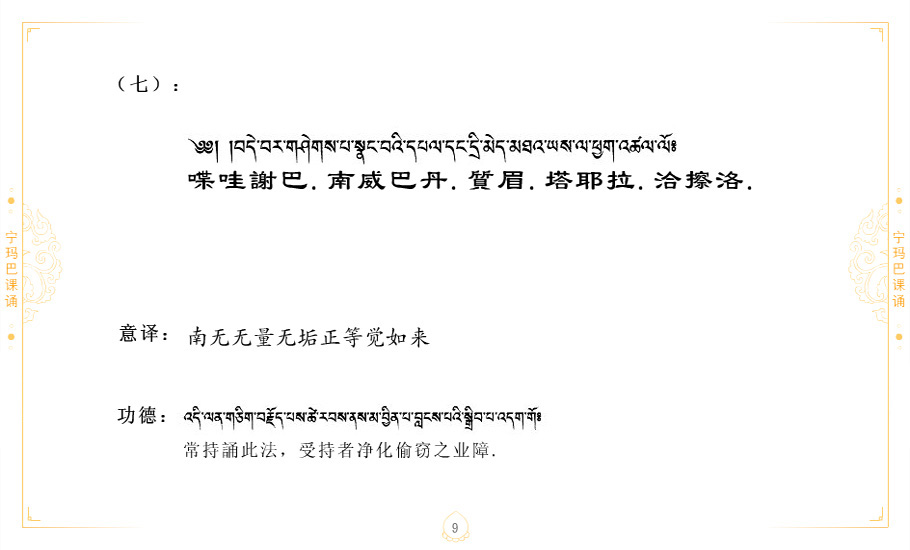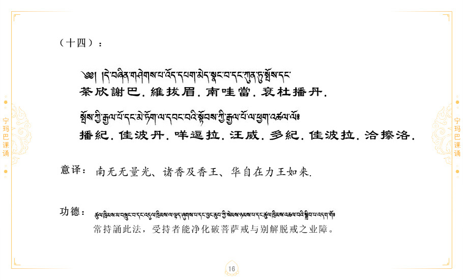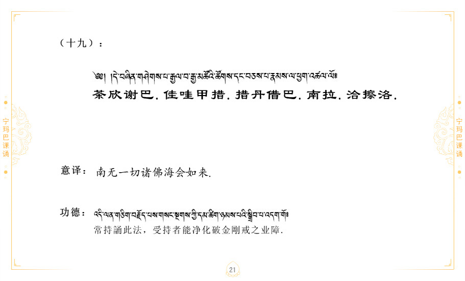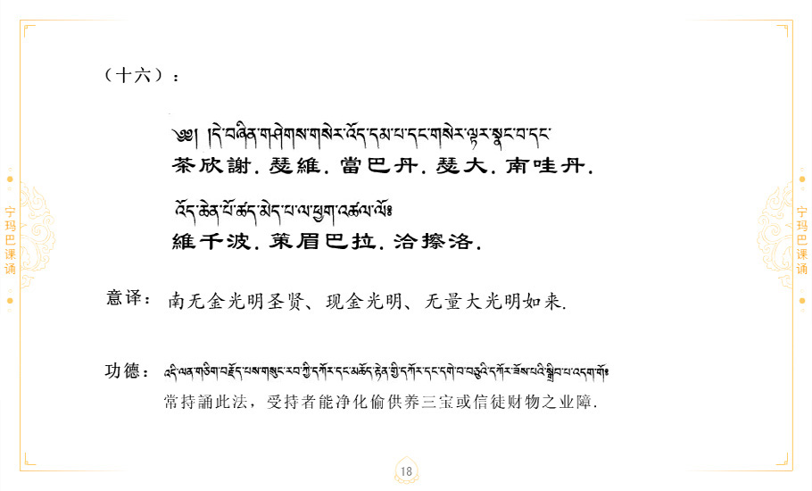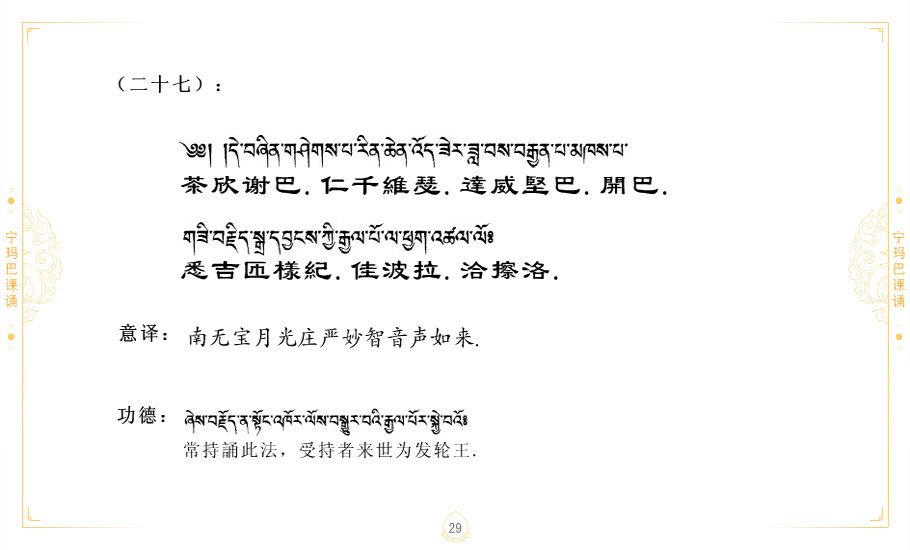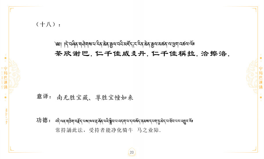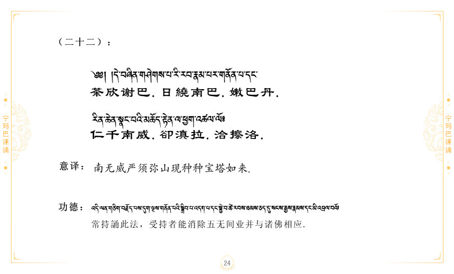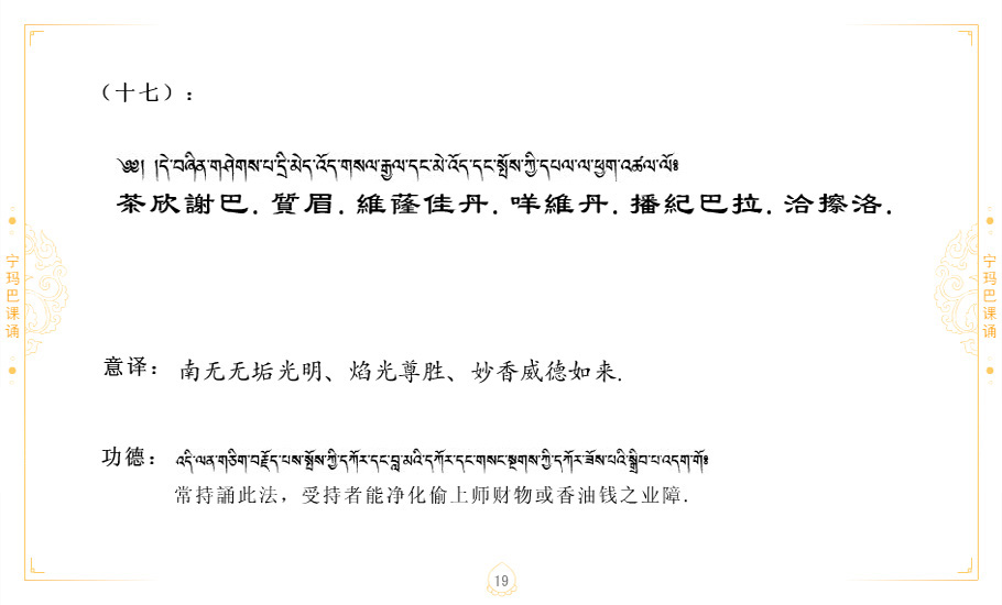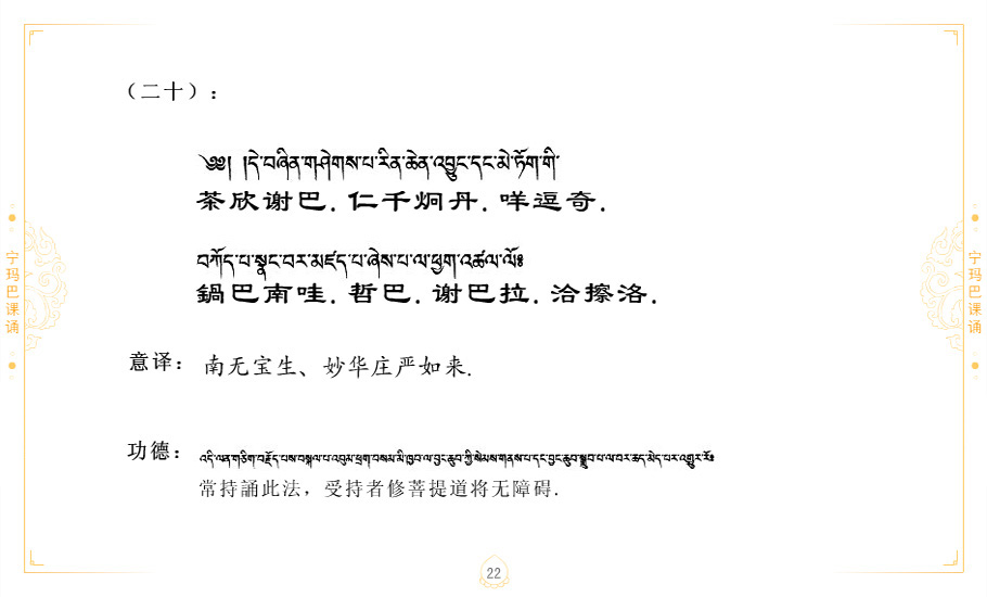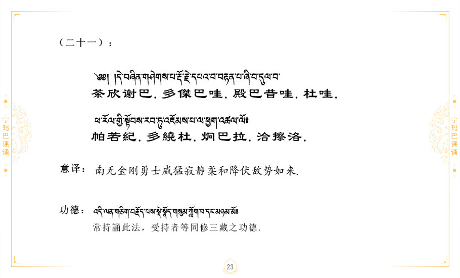 藏 01.加持_p1藏 02.加持_p1藏 03.八圣吉祥颂_p2藏 04.供养仪轨_p6藏 05.普贤行愿品(七支品)_p8藏 06.发心仪轨_p12藏 07.摄受祈祷文 _p17藏 08.文殊礼赞_p20藏 09.文殊开智偈_p21藏 10.请法偈_p22藏 11.回向偈_p22藏 12.普贤行愿品_p23藏 13.成就所愿誓言与咒_p40藏 14.前行的修法_p41藏 15.皈依的修法_p48藏 16.发菩提心_p48藏 17.金刚萨垛诵修法_p49藏 18.曼達拉的修法.p54藏 19.上师瑜珈的修法_p62藏 20.金刚七句祈请文_p75藏 21.意乐成就祈请文_p76藏 22.意乐疾速成就祈请颂_p92藏 23.祷文四句_p95藏 24.往生铜色吉祥愿文_p96藏 25.普获悉地祈祷文_p97藏 26.遣除道障祈祷文_p98藏 27.金刚盔恺修持仪轨_p99藏 28.多个加持咒_p100藏 29.圣号与明咒_p101藏 30.如来真言_p111藏 31.菩萨真言_p118藏 32.金刚真言_p122藏 33.佛母真言_p127藏 34.护法真言_p135藏 35.财神真言_p138藏 36.生活瑜珈_p140藏 37.黄财神修法仪轨_p146藏 39.地藏王菩萨修持仪轨_p149藏 41.前译教法兴盛之愿文_p154藏 42.麦彭仁波切极乐愿文_p159藏 43.文殊大圆满愿文_p161藏 44.吉祥偈_p169藏 45.法王住世祈祷文_p171藏 46.降阳龙朵加参祈祷文_p172藏 47.愿海精髓_p174藏 48.贺耶智私那塔著的密乘简便烧施_p177藏 49.精华会供-金刚萨垛修法仪轨-发愿者-会供-简供-回向吉祥偈_p179-185藏 54.礼赞甘一赞颂王续_p186藏 55.阿弥陀佛修法极乐捷径_p201藏 56.极乐愿文_p205藏 57.大圆满心髓破瓦法_p255藏 58.龙萨破瓦_p255藏 60.前行念诵仪轨_p269藏 62.寂怒百尊修持_p289藏 63.供格萨尔王护法神仪轨_p293藏 64.一髻佛母等护法略修仪轨_p293藏 65.传承上师祈请文_p306藏 66.大圆满莲师荟供仪轨_p311藏 67.调伏情器智慧莲师忿怒修法_p304藏 68.金刚手修持_p345藏 69.供灯仪轨_p347藏 70.荟供仪轨(上师成就加持雨降)_p06藏 73.药师佛_p385藏 74.顺息解脱密法(大圆满虹光)_p06藏 75.普贤王如来祈祷能显自然智根本愿文_p396藏 76.释迦牟尼佛_修法仪轨_p409藏 77.古萨里修法_p417藏 78.火施仪轨(回向魔崇部多)_p420藏 79.法王上师相应法_p429藏 80.上师祈请颂_p434藏 81.真实名经归纳七句_p435藏 82.无垢忏悔续_p436