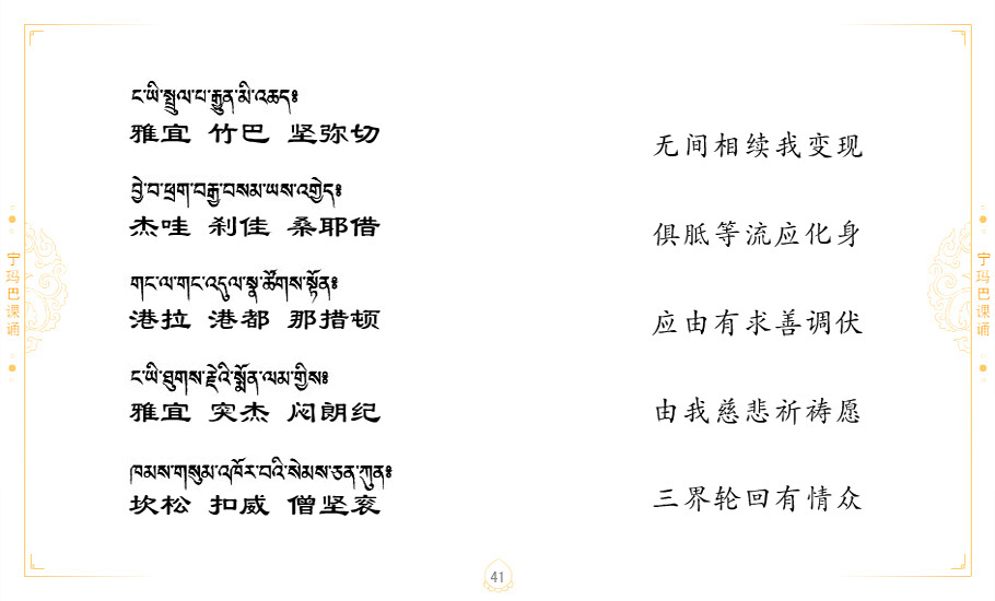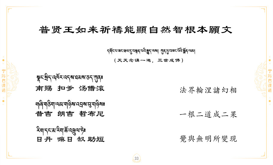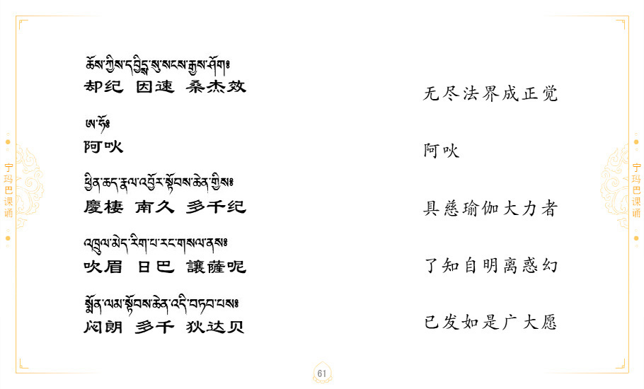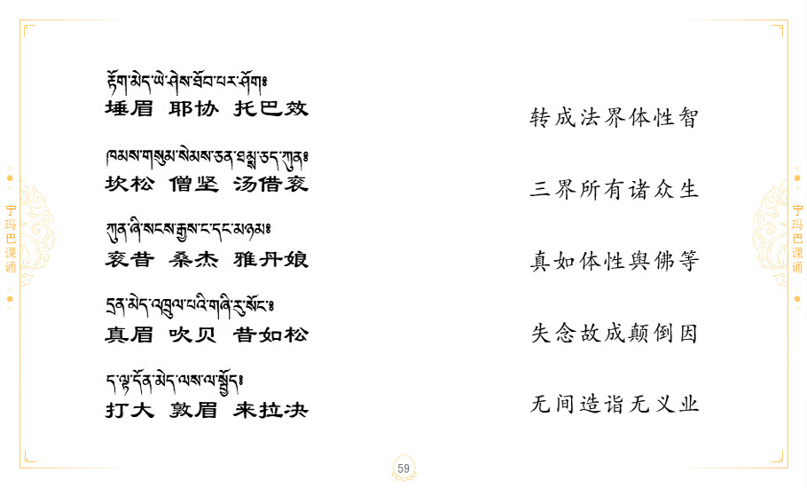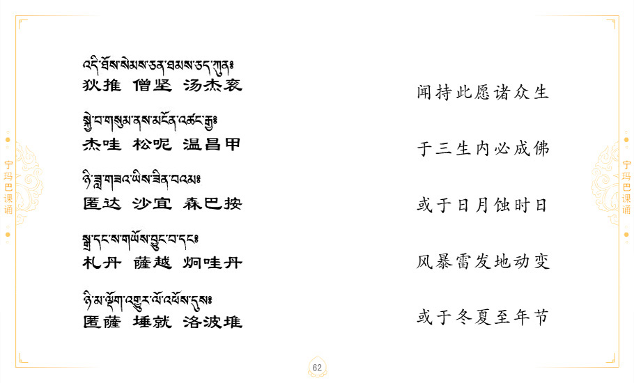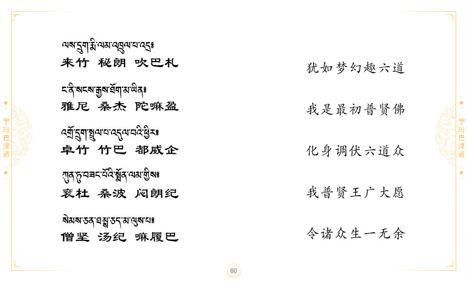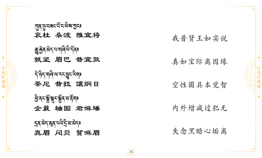 藏 01.加持_p1藏 02.加持_p1藏 03.八圣吉祥颂_p2藏 04.供养仪轨_p6藏 05.普贤行愿品(七支品)_p8藏 06.发心仪轨_p12藏 07.摄受祈祷文 _p17藏 08.文殊礼赞_p20藏 09.文殊开智偈_p21藏 10.请法偈_p22藏 11.回向偈_p22藏 12.普贤行愿品_p23藏 13.成就所愿誓言与咒_p40藏 14.前行的修法_p41藏 15.皈依的修法_p48藏 16.发菩提心_p48藏 17.金刚萨垛诵修法_p49藏 18.曼達拉的修法.p54藏 19.上师瑜珈的修法_p62藏 20.金刚七句祈请文_p75藏 21.意乐成就祈请文_p76藏 22.意乐疾速成就祈请颂_p92藏 23.祷文四句_p95藏 24.往生铜色吉祥愿文_p96藏 25.普获悉地祈祷文_p97藏 26.遣除道障祈祷文_p98藏 27.金刚盔恺修持仪轨_p99藏 28.多个加持咒_p100藏 29.圣号与明咒_p101藏 30.如来真言_p111藏 31.菩萨真言_p118藏 32.金刚真言_p122藏 33.佛母真言_p127藏 34.护法真言_p135藏 35.财神真言_p138藏 36.生活瑜珈_p140藏 37.黄财神修法仪轨_p146藏 39.地藏王菩萨修持仪轨_p149藏 41.前译教法兴盛之愿文_p154藏 42.麦彭仁波切极乐愿文_p159藏 43.文殊大圆满愿文_p161藏 44.吉祥偈_p169藏 45.法王住世祈祷文_p171藏 46.降阳龙朵加参祈祷文_p172藏 47.愿海精髓_p174藏 48.贺耶智私那塔著的密乘简便烧施_p177藏 49.精华会供-金刚萨垛修法仪轨-发愿者-会供-简供-回向吉祥偈_p179-185藏 54.礼赞甘一赞颂王续_p186藏 55.阿弥陀佛修法极乐捷径_p201藏 56.极乐愿文_p205藏 57.大圆满心髓破瓦法_p255藏 58.龙萨破瓦_p255藏 60.前行念诵仪轨_p269藏 62.寂怒百尊修持_p289藏 63.供格萨尔王护法神仪轨_p293藏 64.一髻佛母等护法略修仪轨_p293藏 65.传承上师祈请文_p306藏 66.大圆满莲师荟供仪轨_p311藏 67.调伏情器智慧莲师忿怒修法_p304藏 68.金刚手修持_p345藏 69.供灯仪轨_p347藏 70.荟供仪轨(上师成就加持雨降)_p06藏 73.药师佛_p385藏 74.顺息解脱密法(大圆满虹光)_p06藏 75.普贤王如来祈祷能显自然智根本愿文_p396藏 76.释迦牟尼佛_修法仪轨_p409藏 77.古萨里修法_p417藏 78.火施仪轨(回向魔崇部多)_p420藏 79.法王上师相应法_p429藏 80.上师祈请颂_p434藏 81.真实名经归纳七句_p435藏 82.无垢忏悔续_p436
